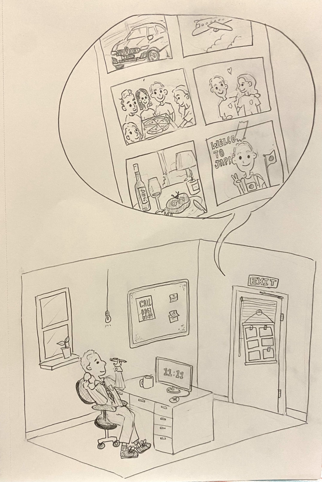 I was offered this job all of a sudden. At first, I doubt the authenticity of the work since this is the first time I am asked to do commission. But then, I received a phone call and it changed everything. In the one hour long phone call, Tom explained to me that he was an engineer that got lucky and retired at a young age. He elaborated that that he is now a life coach aiming to help with people's goals in life. The way he can accomplish it is to make a very detailed vision board that portrait the characteristic of the client so that he or she can allow the reality to take place. For example, John needs to lose 10 kilogram for better health so what I can do is, put a skinner John on the drawing. John is more likely to be motivated after seeing himself thinner.