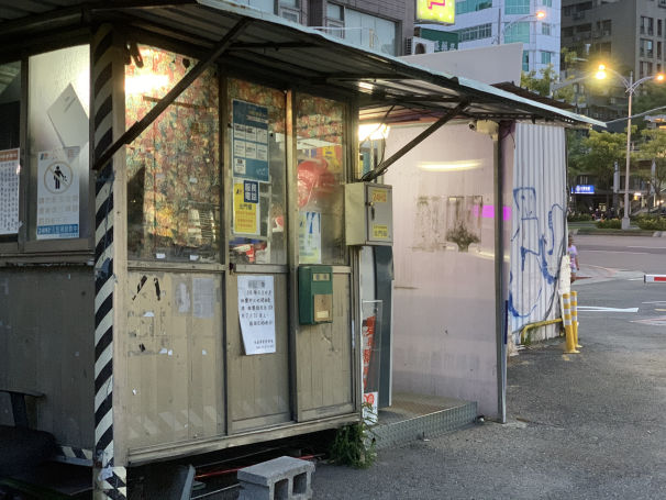 The stand is supposed to be a tollbooth for a parking lot. The illegally pasted flyers and stickers are not only oddly satisfying to look at, but they also serve as a signature of the rebelling crowd.